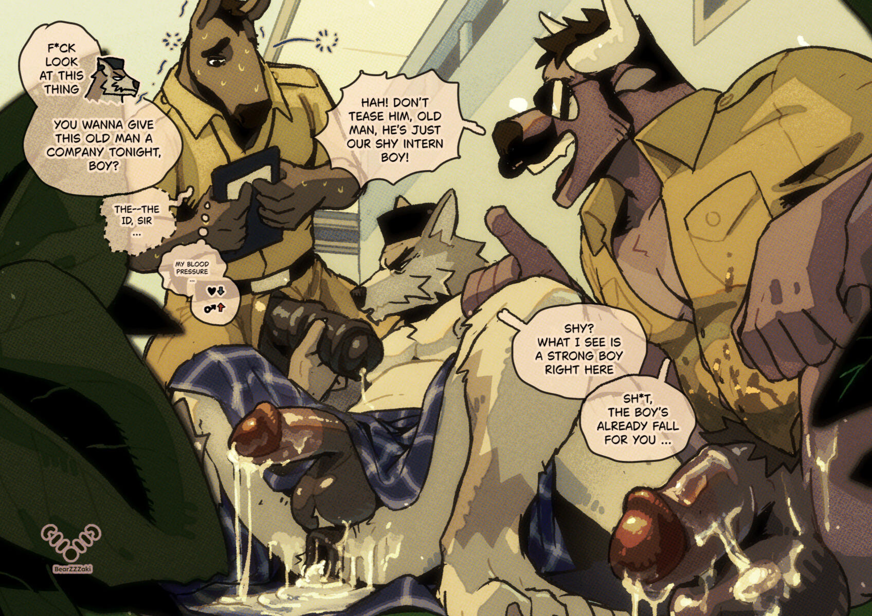 Bara, bulky gentlemen. I'm especially confident with old men or otter types. I also enjoy kink-themed pieces if I get enough creative freedom.